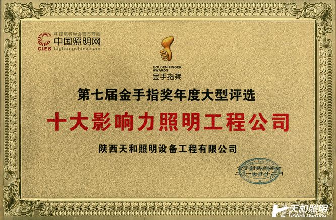 榮獲2017年度第七屆“金手指獎(jiǎng)”——十大影響力照明工程公司