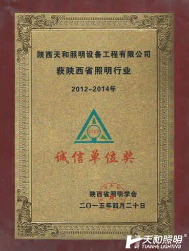 2015榮獲陜西省照明學會2012-2014“誠信單位獎”
